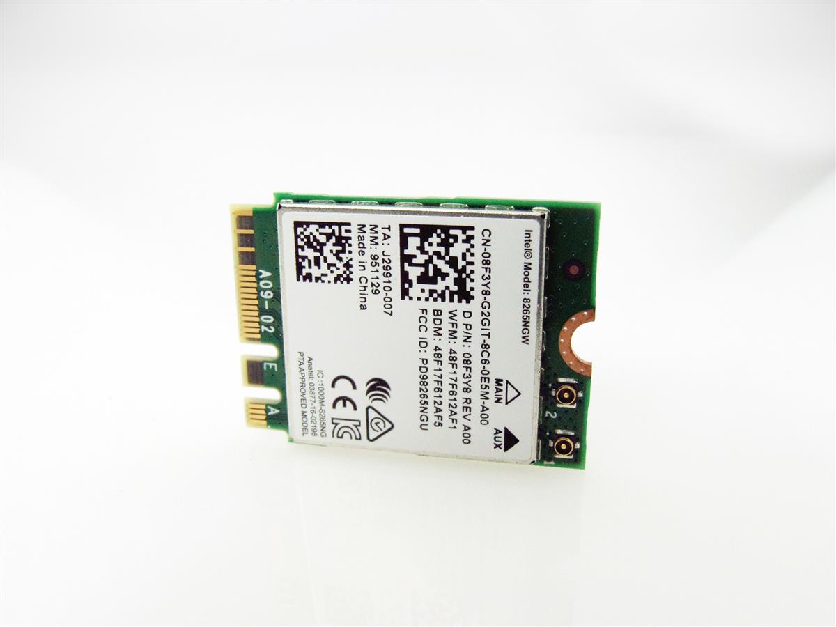 - 8F3Y8 VC27V Intel AC 8265 WiFi karta Wi-Fi 5 + Bluetooth 4.2 (Dual Band 2.4/5 GHz)